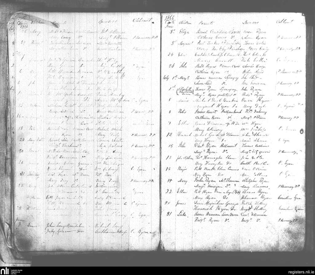 Castleconnell; County of Limerick, Tipperary; Diocese of Killaloe. Baptisms, Apr. 1866 to July 1866