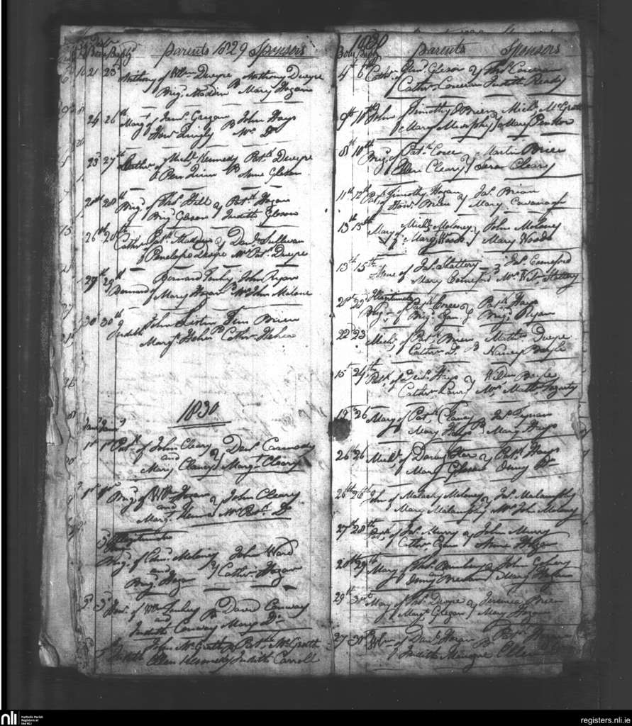 Youghal Arra; County of Tipperary; Diocese of Killaloe. Baptisms, Dec. 1829 to Jan. 1830