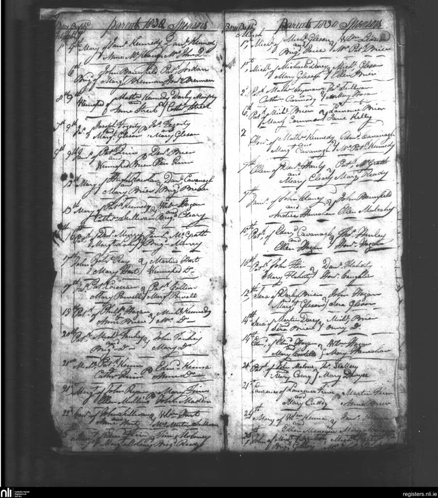 Youghal Arra; County of Tipperary; Diocese of Killaloe. Baptisms, Feb. 1830 to Mar. 1830