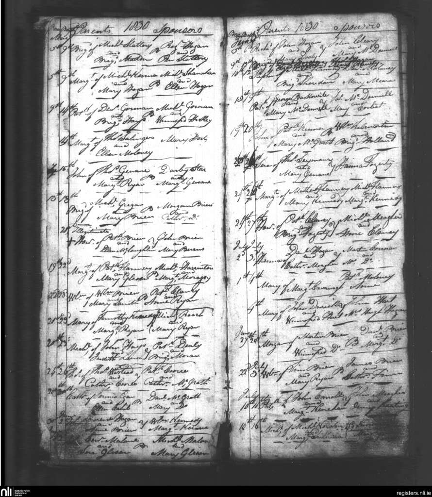 Youghal Arra; County of Tipperary; Diocese of Killaloe. Baptisms, May 1830 to July 1830