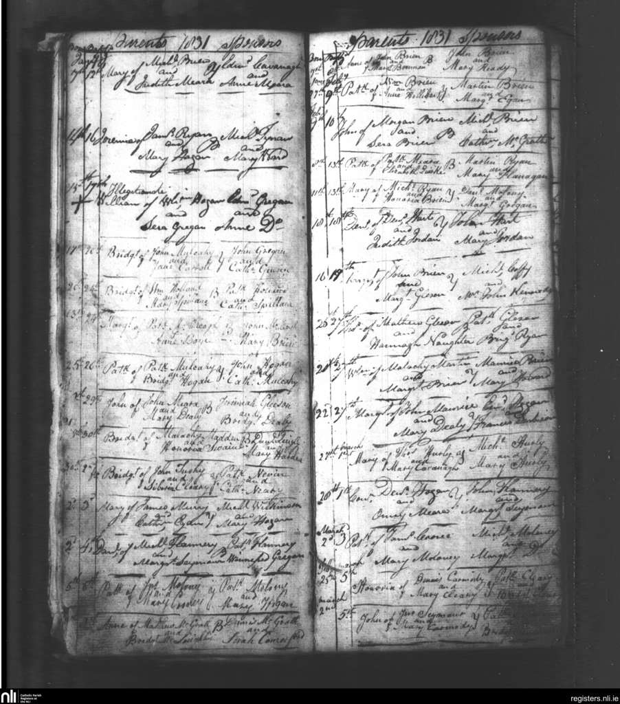 Youghal Arra; County of Tipperary; Diocese of Killaloe. Baptisms, Jan. 1831 to Mar. 1831