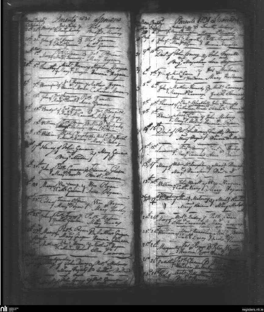 Youghal Arra; County of Tipperary; Diocese of Killaloe. Baptisms, Oct. 1831 to Dec. 1831