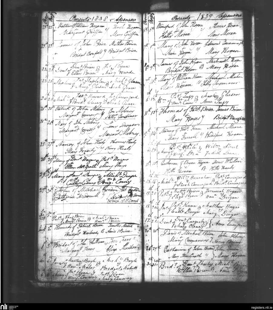 Youghal Arra; County of Tipperary; Diocese of Killaloe. Baptisms, Dec. 1838 to Jan. 1839