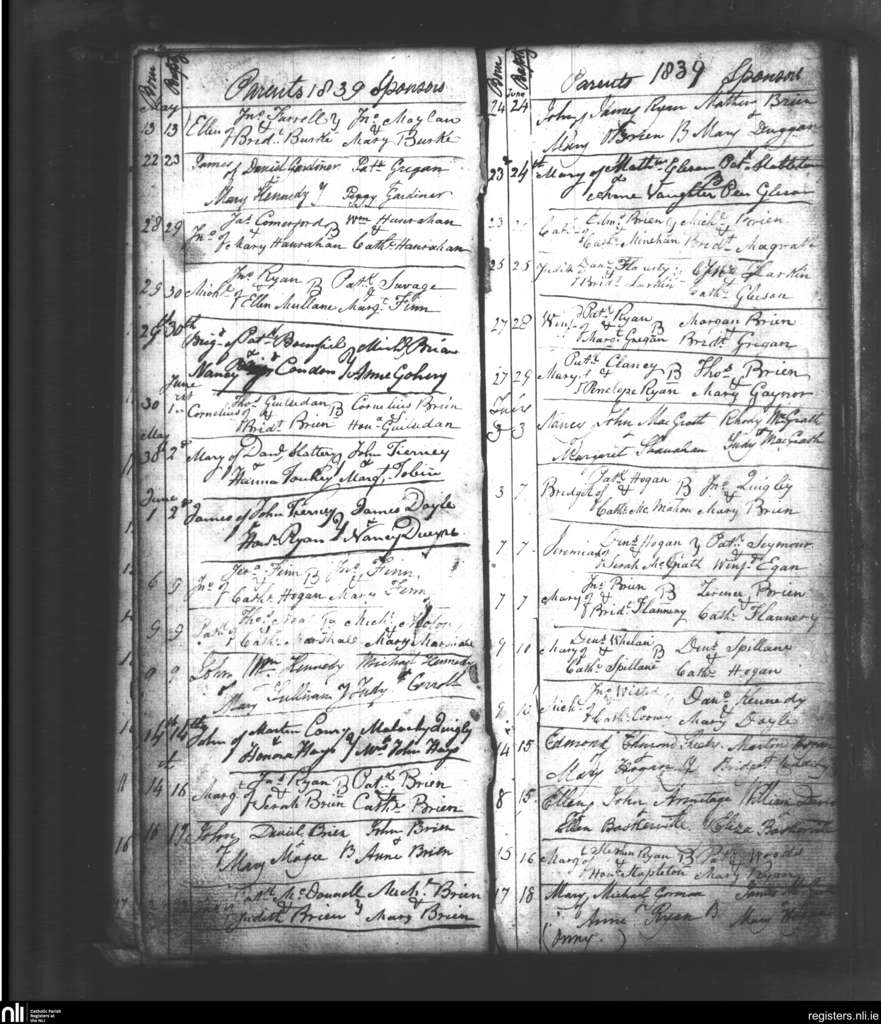 Youghal Arra; County of Tipperary; Diocese of Killaloe. Baptisms, May 1839 to July 1839