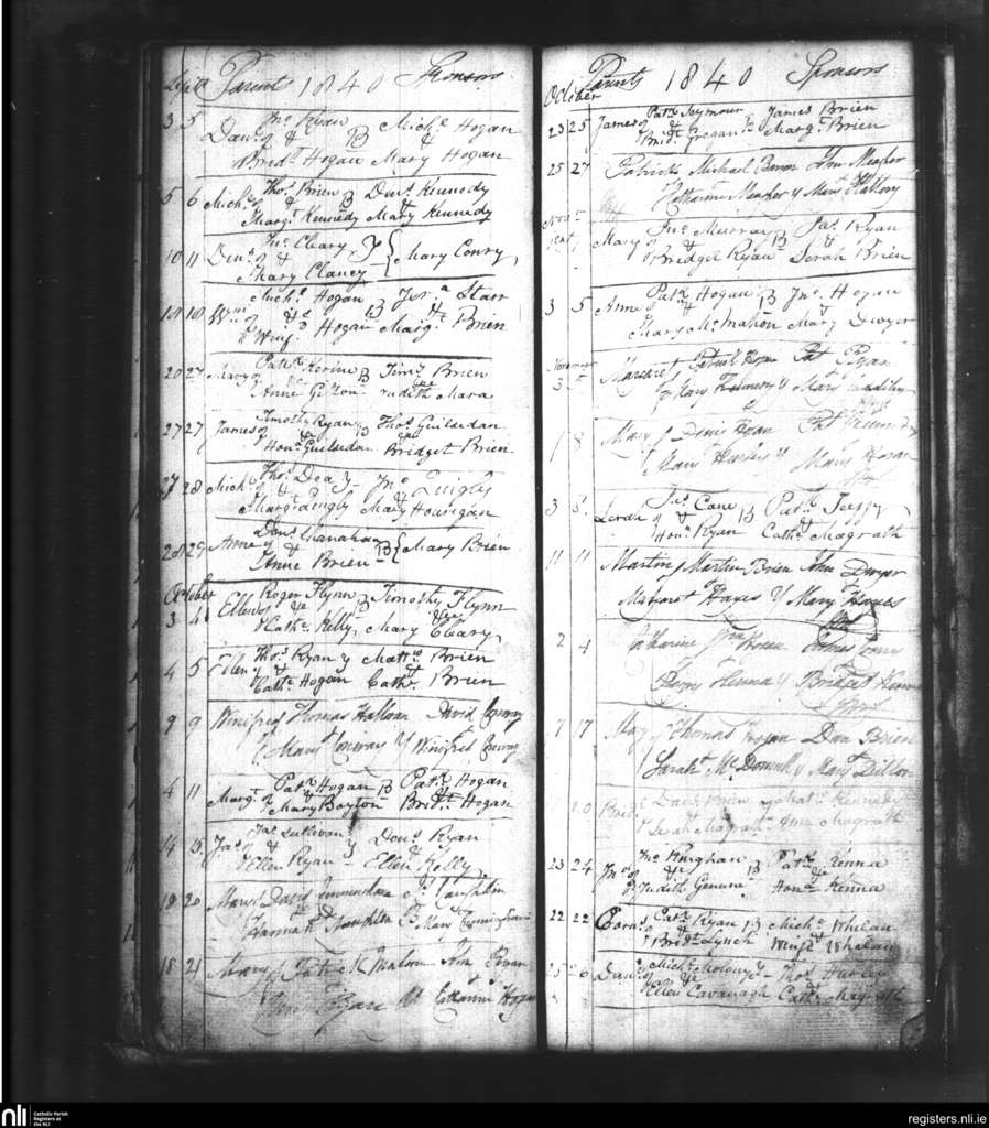 Youghal Arra; County of Tipperary; Diocese of Killaloe. Baptisms, Sep. 1840 to Nov. 1840