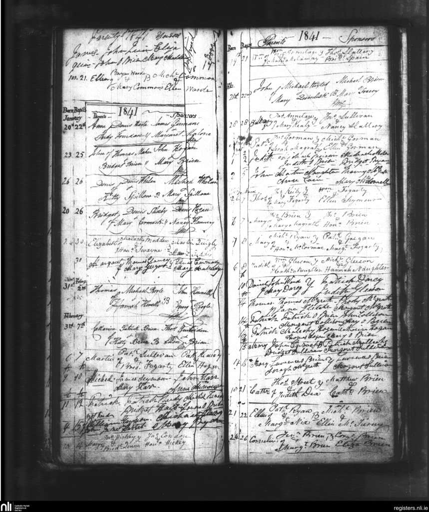 Youghal Arra; County of Tipperary; Diocese of Killaloe. Baptisms, Jan. 1841 to Mar. 1841