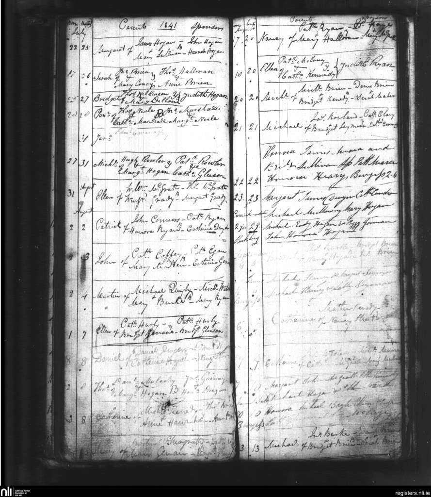 Youghal Arra; County of Tipperary; Diocese of Killaloe. Baptisms, July 1841 to Sep. 1841
