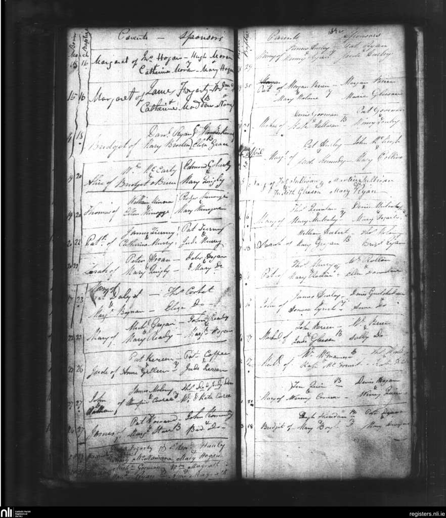 Youghal Arra; County of Tipperary; Diocese of Killaloe. Baptisms, Mar. 1842 to Apr. 1842
