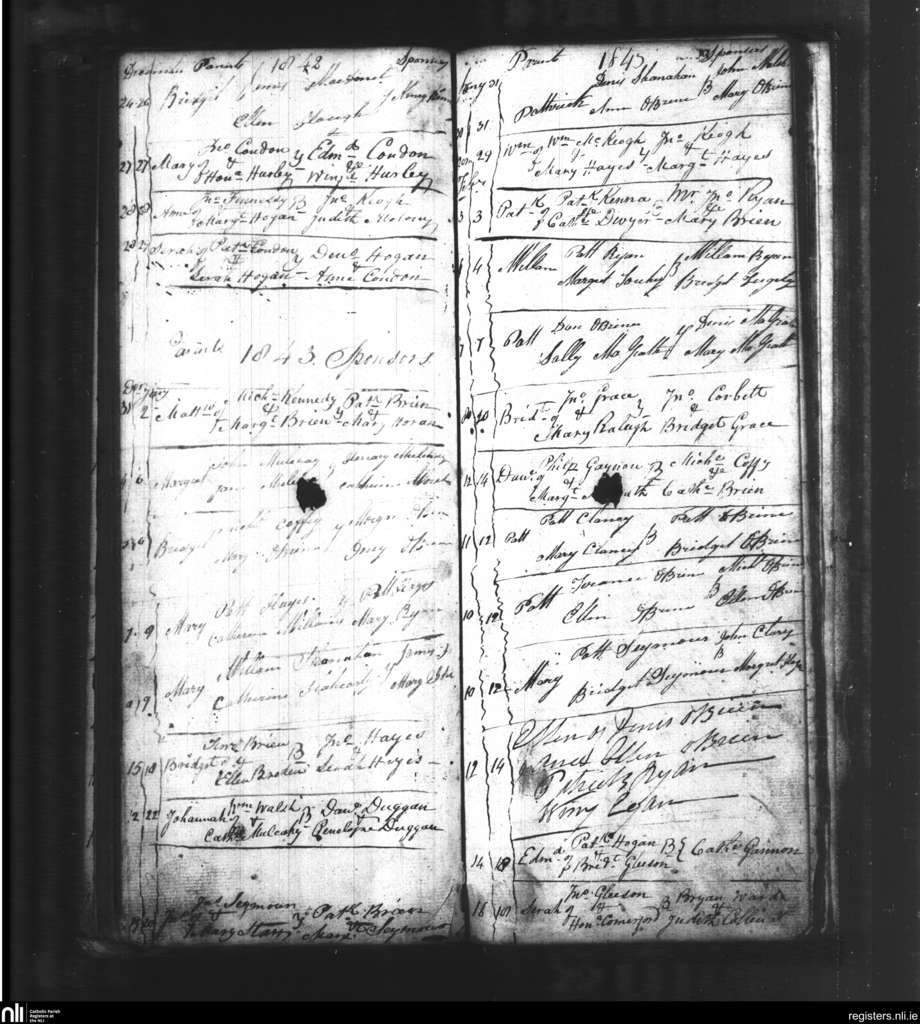 Youghal Arra; County of Tipperary; Diocese of Killaloe. Baptisms, Dec. 1842 to Feb. 1843