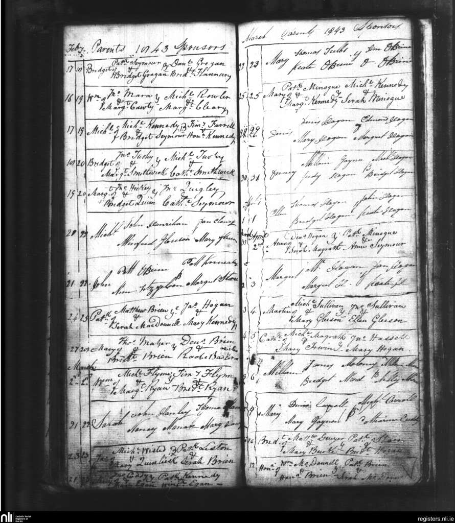 Youghal Arra; County of Tipperary; Diocese of Killaloe. Baptisms, Feb. 1843 to Apr. 1843