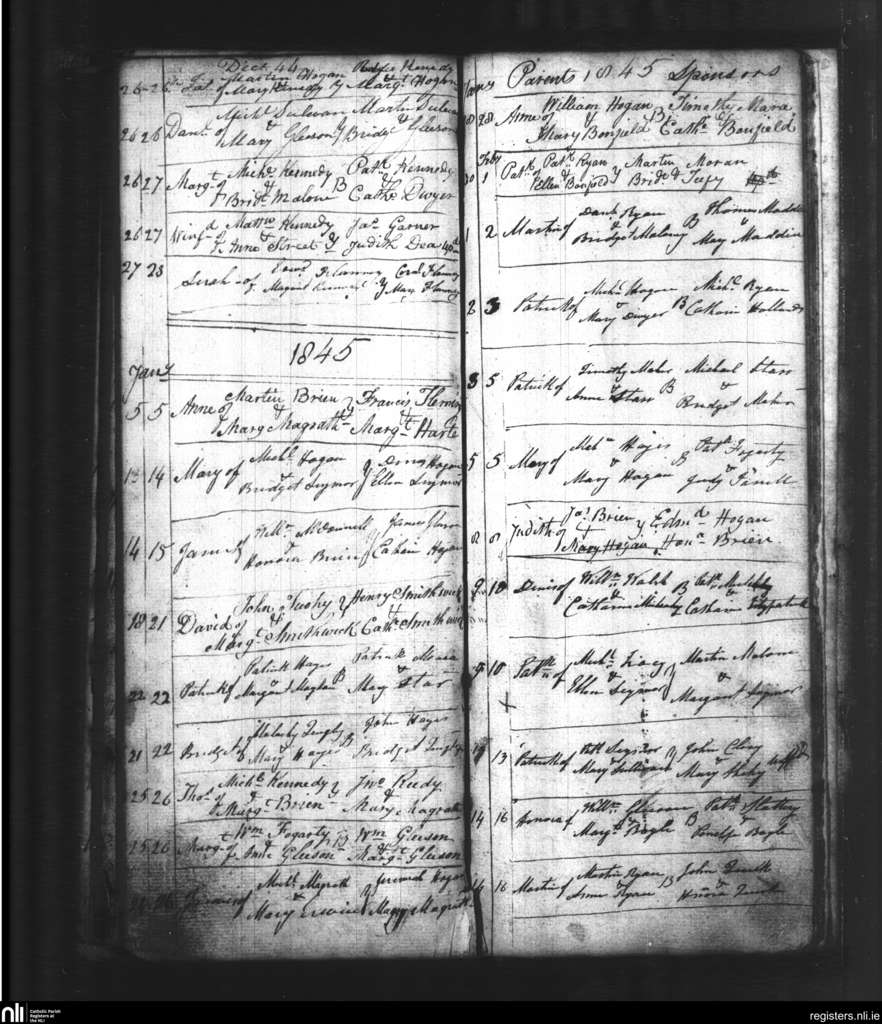 Youghal Arra; County of Tipperary; Diocese of Killaloe. Baptisms, Dec. 1844 to Feb. 1845