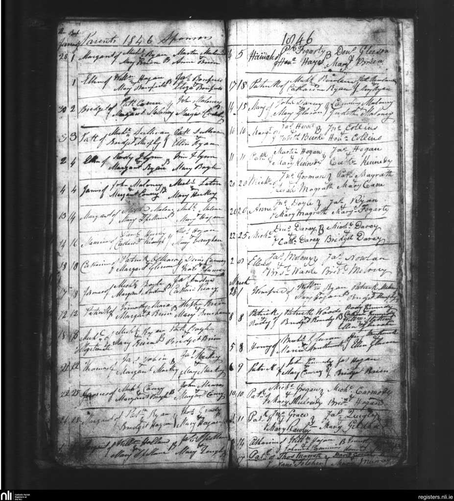 Youghal Arra; County of Tipperary; Diocese of Killaloe. Baptisms, Jan. 1846 to Mar. 1846
