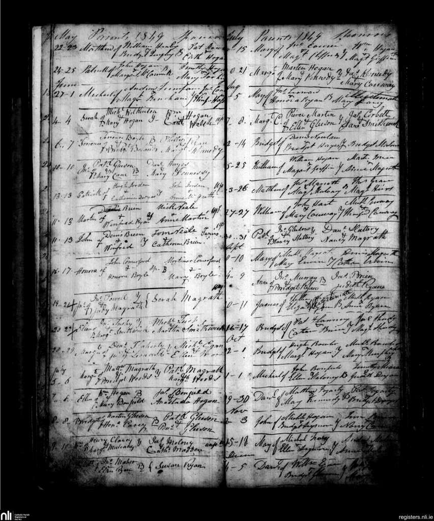 Youghal Arra; County of Tipperary; Diocese of Killaloe. Baptisms, May 1849 to Dec. 1849
