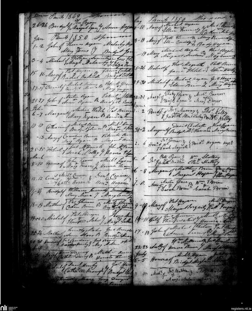 Youghal Arra; County of Tipperary; Diocese of Killaloe. Baptisms, Dec. 1849 to July 1850