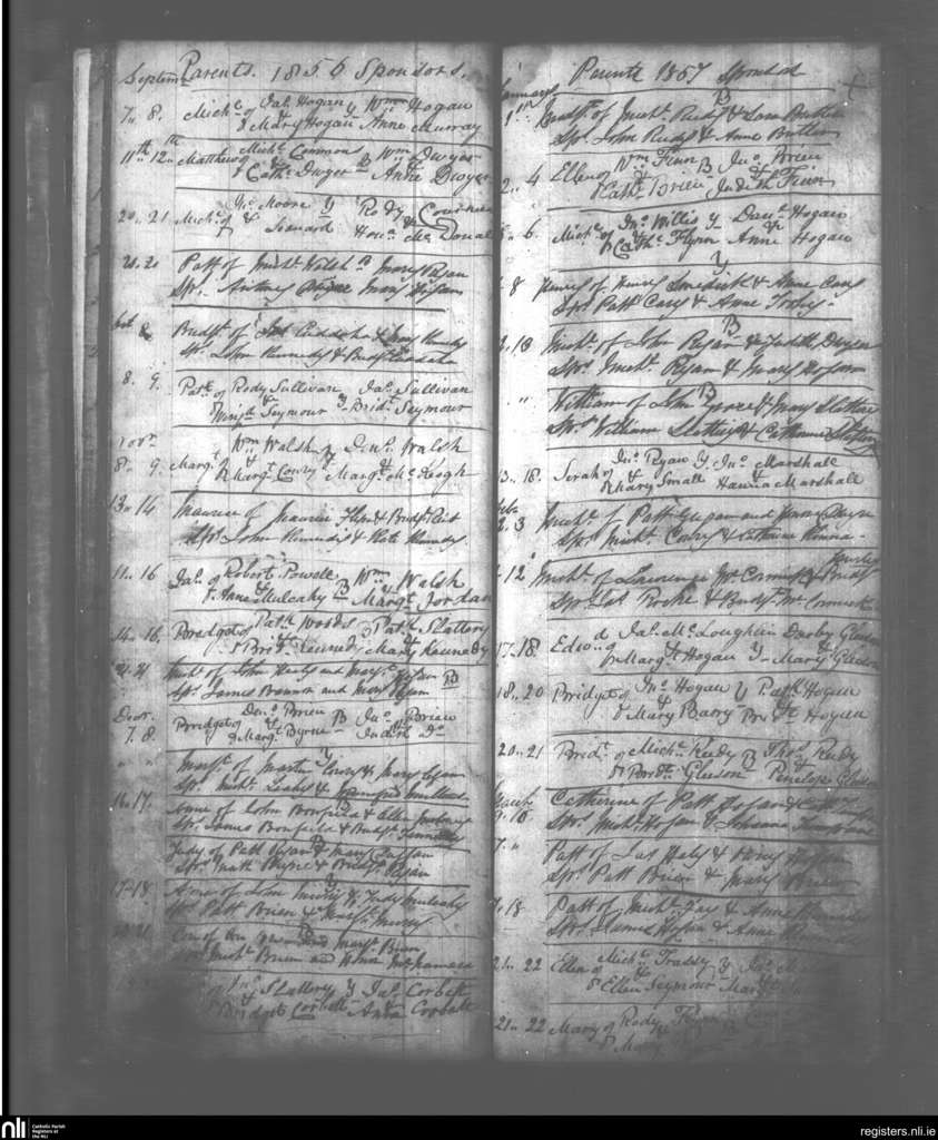 Youghal Arra; County of Tipperary; Diocese of Killaloe. Baptisms, Sep. 1856 to Mar. 1857