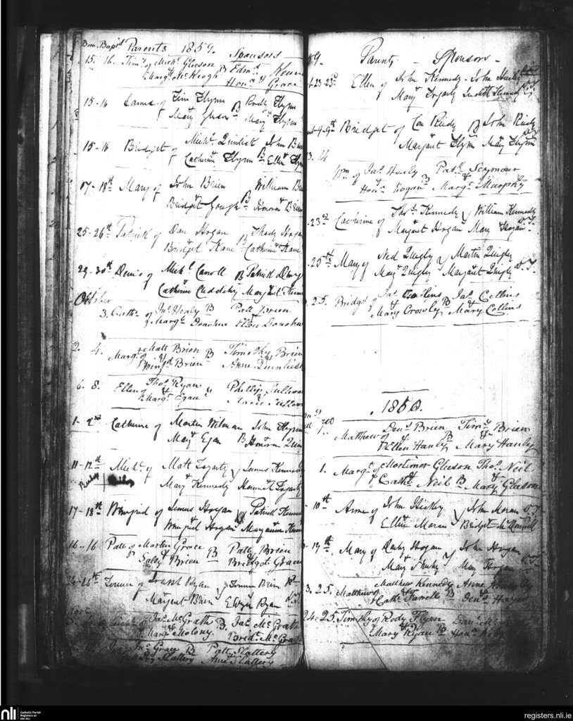 Youghal Arra; County of Tipperary; Diocese of Killaloe. Baptisms, Sep. 1859 to Jan. 1860