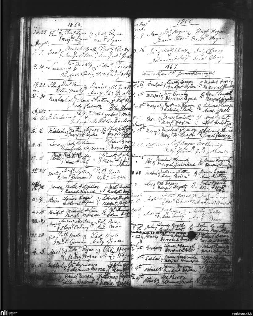 Youghal Arra; County of Tipperary; Diocese of Killaloe. Baptisms, July 1866 to Apr. 1867