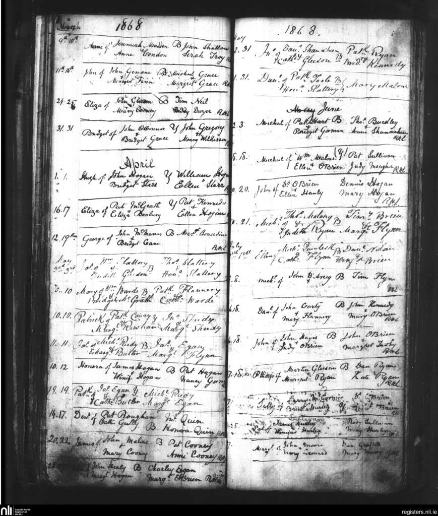 Youghal Arra; County of Tipperary; Diocese of Killaloe. Baptisms, Mar. 1868 to July 1868