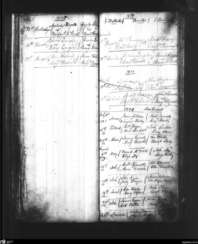 Youghal Arra; County of Tipperary; Diocese of Killaloe. Baptisms, Apr. 1871 to Nov. 1871