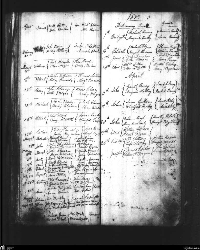 Youghal Arra; County of Tipperary; Diocese of Killaloe. Baptisms, Feb. 1872 to Apr. 1873