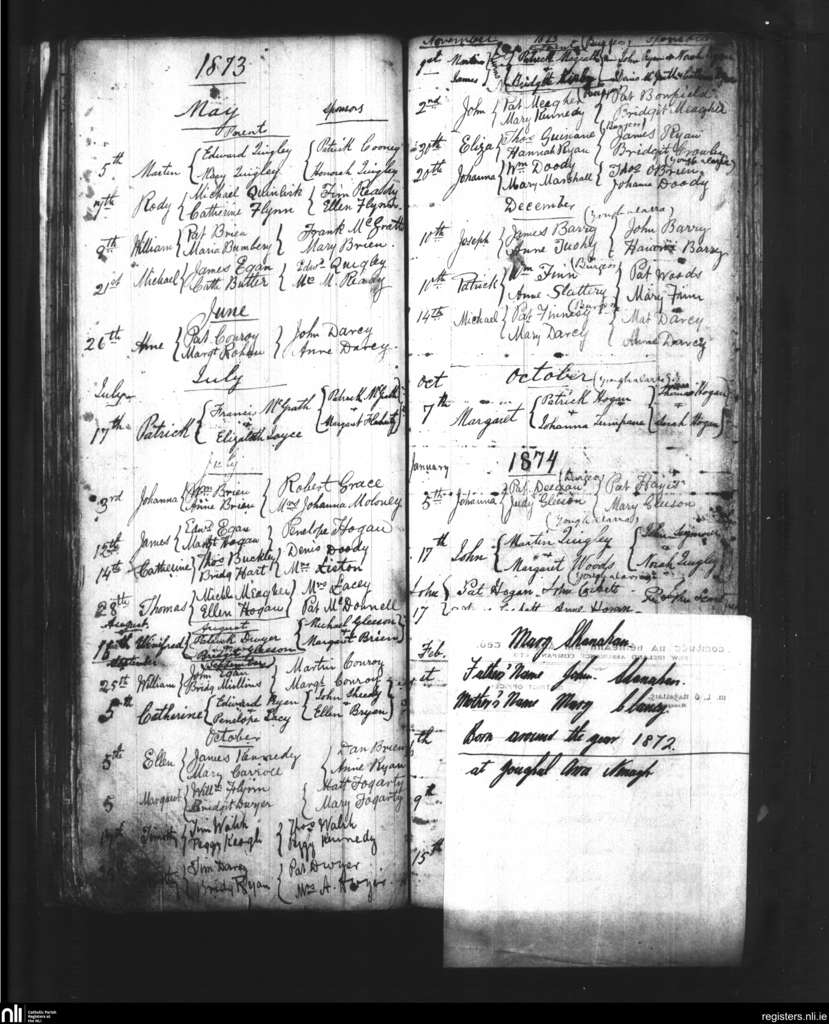 Youghal Arra; County of Tipperary; Diocese of Killaloe. Baptisms, May 1873 to Feb. 1874