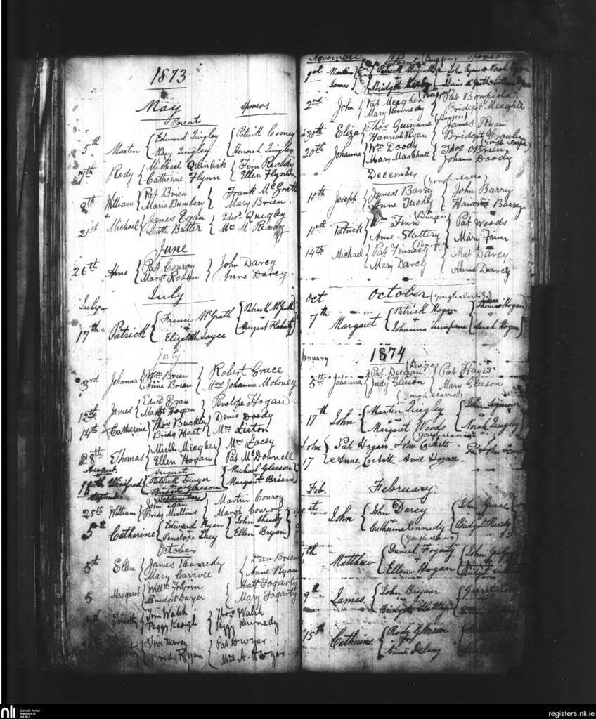 Youghal Arra; County of Tipperary; Diocese of Killaloe. Baptisms, May 1873 to Feb. 1874