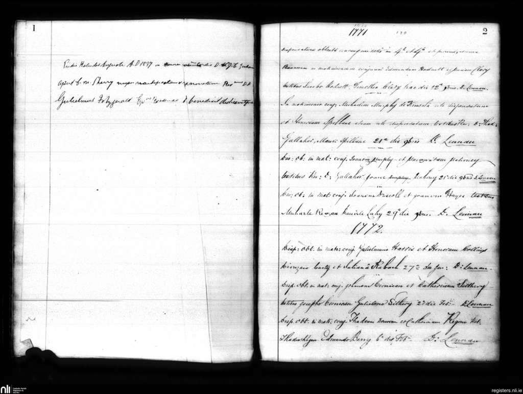 Lislee; County of Cork; Diocese of Cork and Ross. Marriages, Nov. 1771 to Feb. 1772
