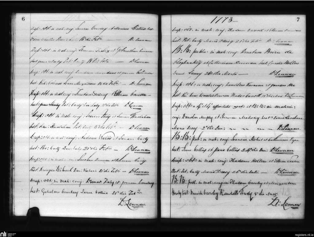Lislee; County of Cork; Diocese of Cork and Ross. Marriages, Feb. 1773 to Aug. 1773