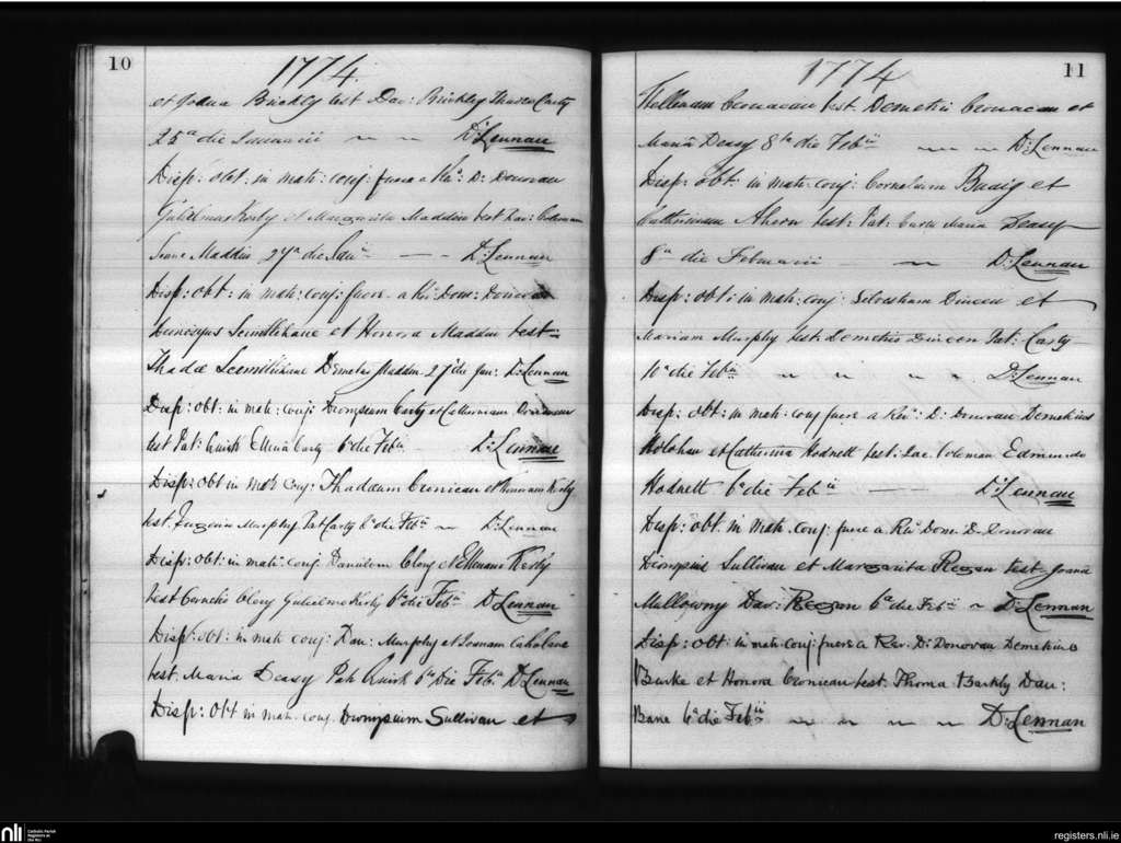 Lislee; County of Cork; Diocese of Cork and Ross. Marriages, Jan. 1774 to Feb. 1774