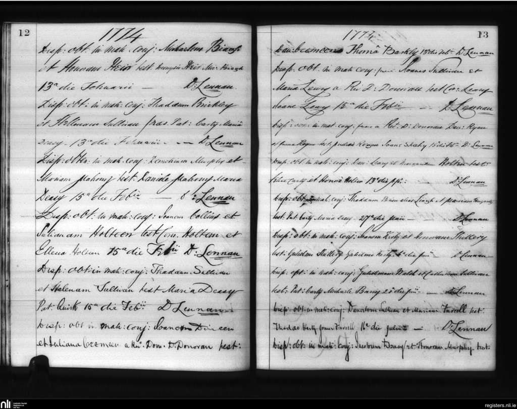 Lislee; County of Cork; Diocese of Cork and Ross. Marriages, Feb. 1774 to July 1774