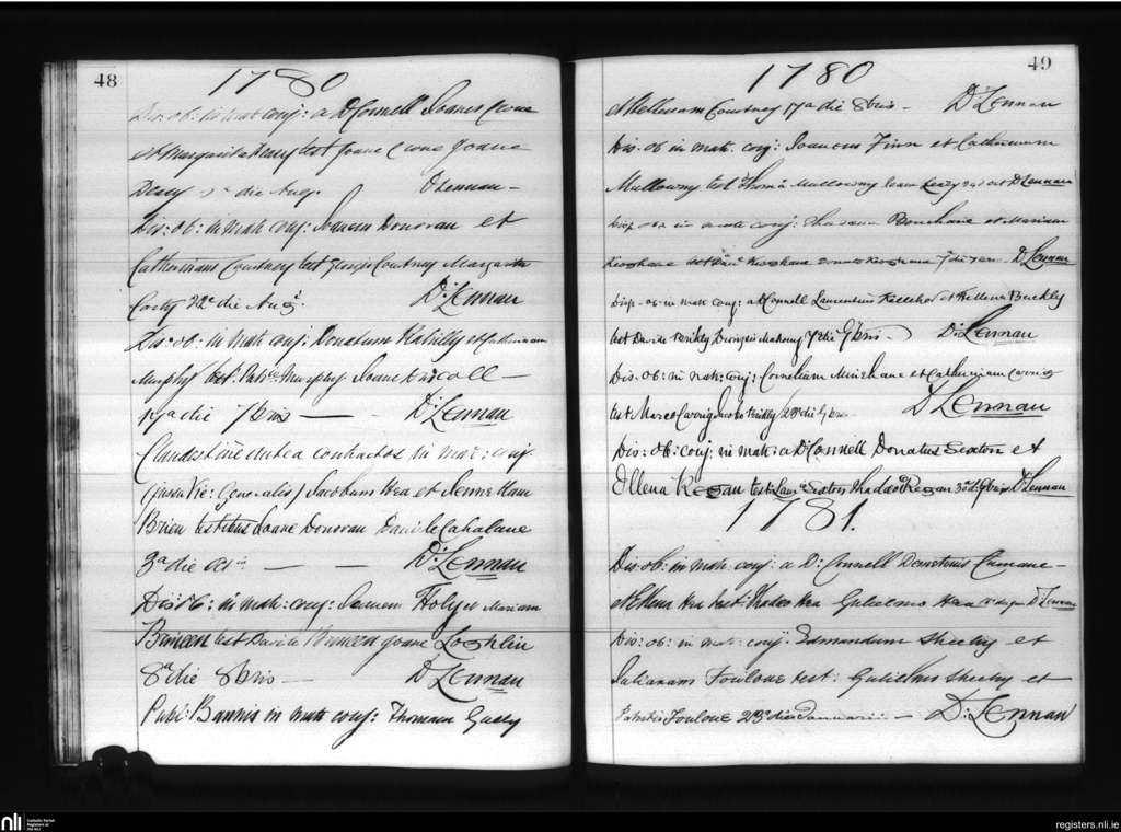 Lislee; County of Cork; Diocese of Cork and Ross. Marriages, Aug. 1780 to Jan. 1781