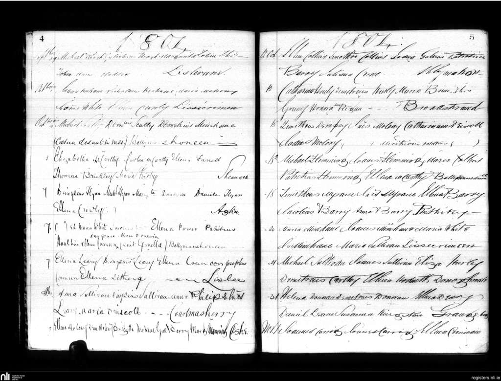 Lislee; County of Cork; Diocese of Cork and Ross. Baptisms, Sep. 1804 to Nov. 1804