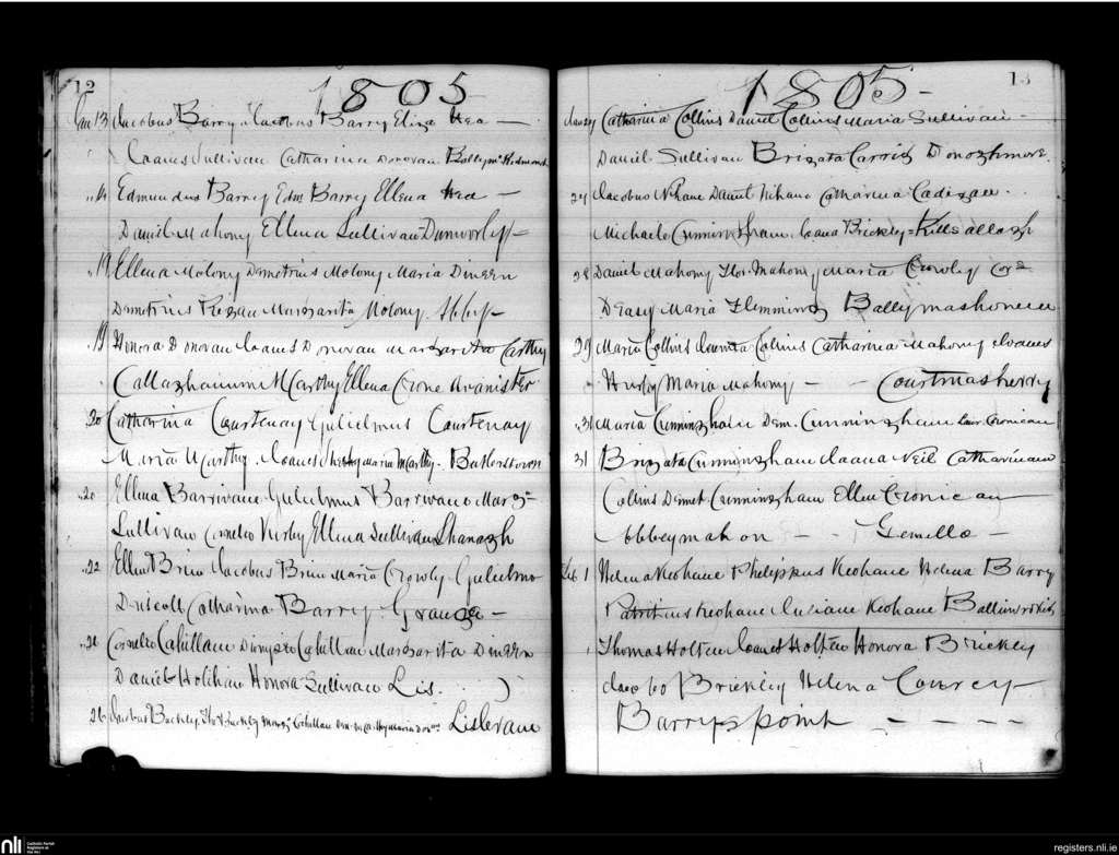 Lislee; County of Cork; Diocese of Cork and Ross. Baptisms, Jan. 1805 to Feb. 1805