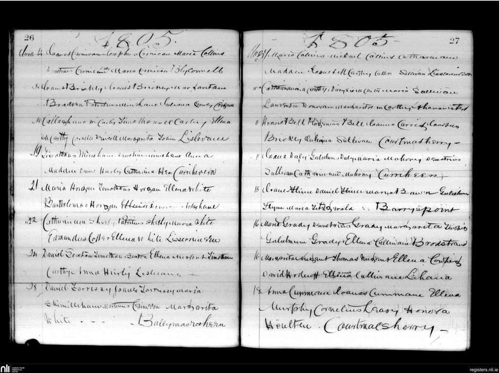 Lislee; County of Cork; Diocese of Cork and Ross. Baptisms, July 1805 to Aug. 1805