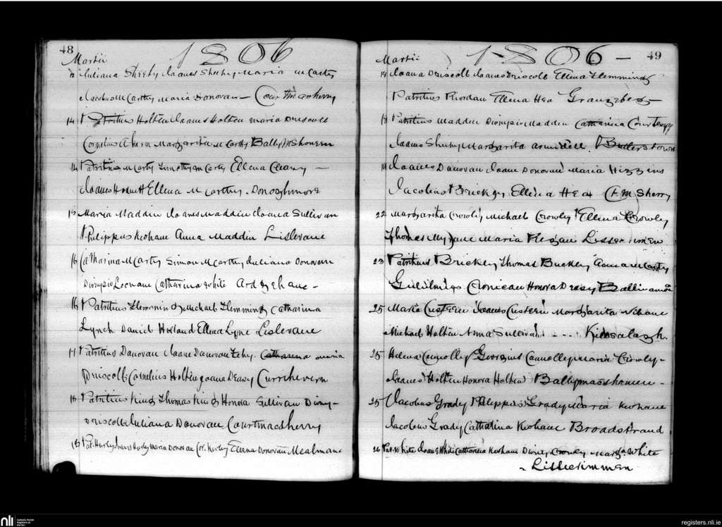 Lislee; County of Cork; Diocese of Cork and Ross. Baptisms, Mar. 1806
