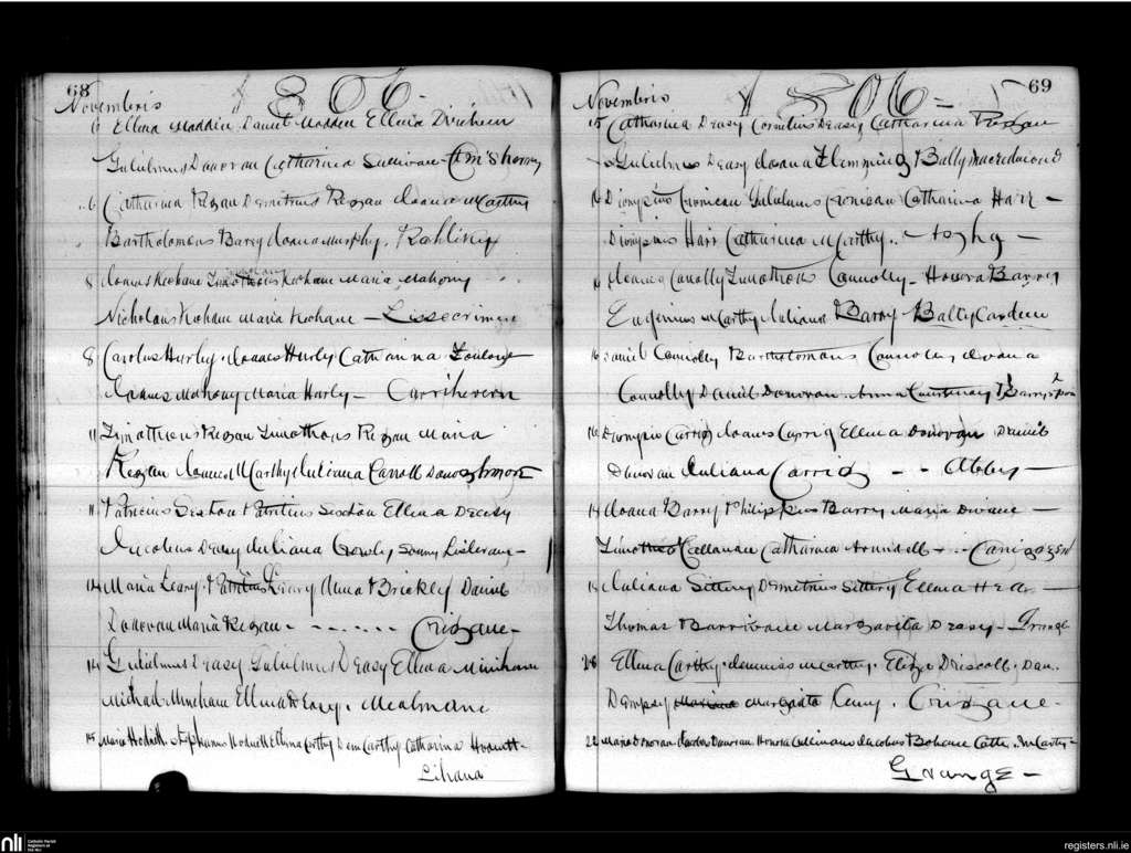 Lislee; County of Cork; Diocese of Cork and Ross. Baptisms, Nov. 1806