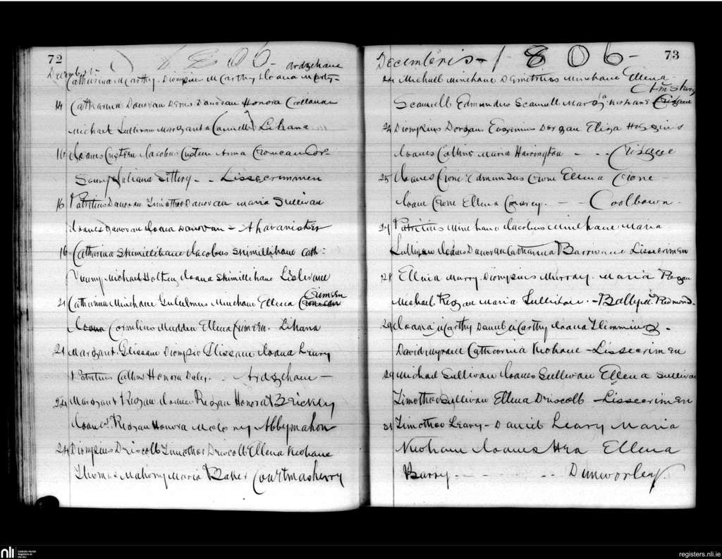 Lislee; County of Cork; Diocese of Cork and Ross. Baptisms, Dec. 1806