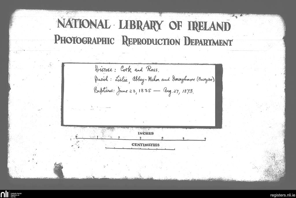 Lislee; County of Cork; Diocese of Cork and Ross. Baptisms