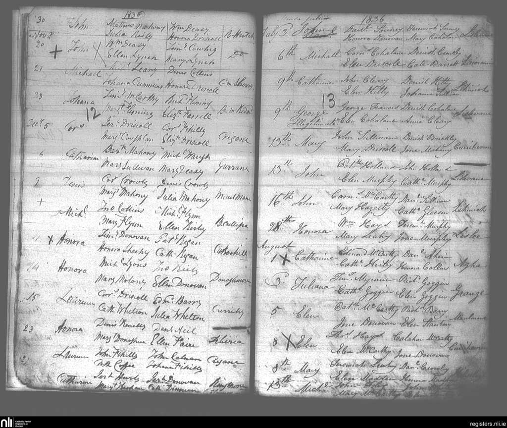 Lislee; County of Cork; Diocese of Cork and Ross. Baptisms, July 1836 to Dec. 1836