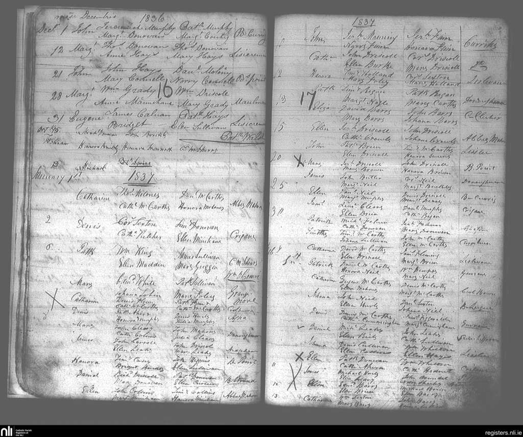 Lislee; County of Cork; Diocese of Cork and Ross. Baptisms, Dec. 1836 to Feb. 1837