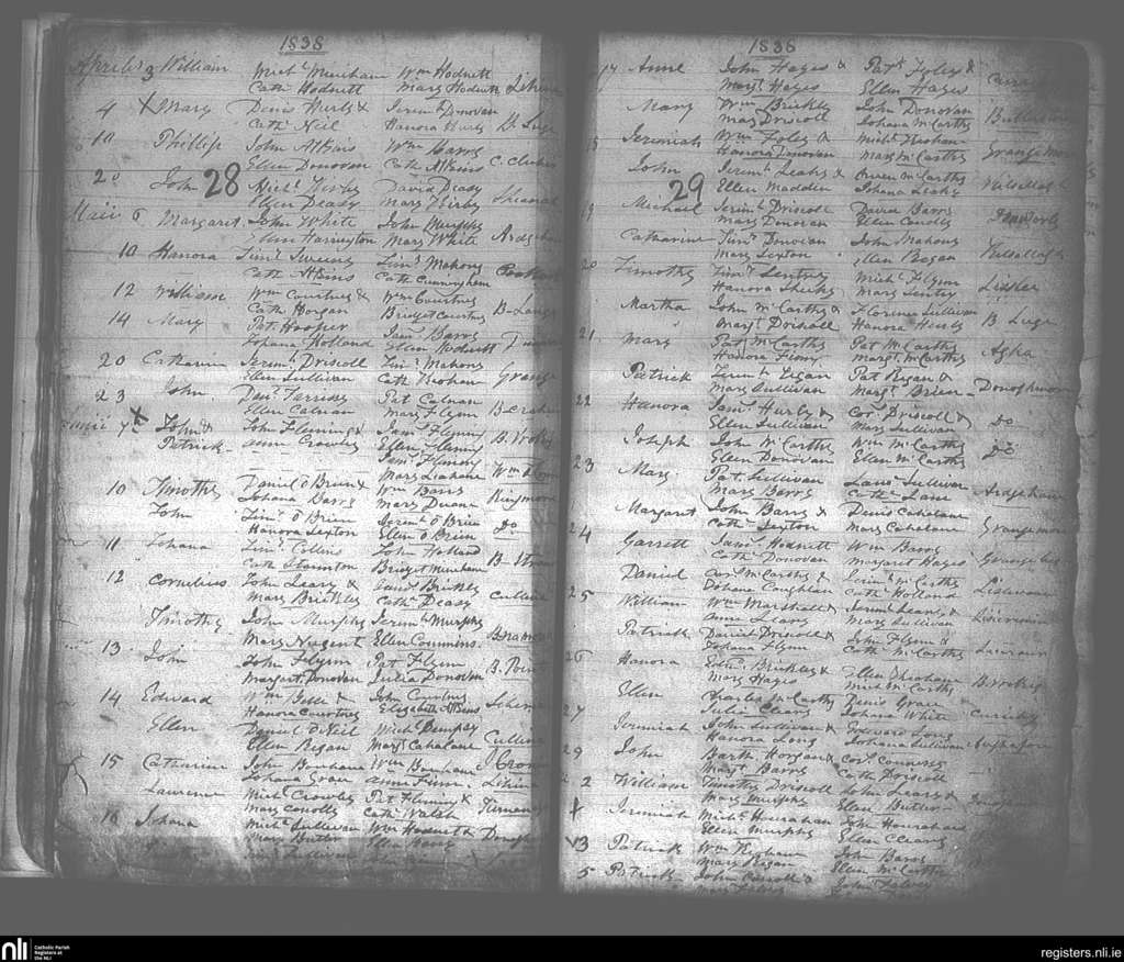 Lislee; County of Cork; Diocese of Cork and Ross. Baptisms, Apr. 1838 to July 1838