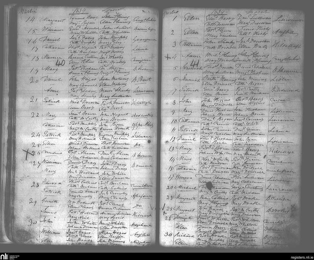 Lislee; County of Cork; Diocese of Cork and Ross. Baptisms, Mar. 1839 to Apr. 1839
