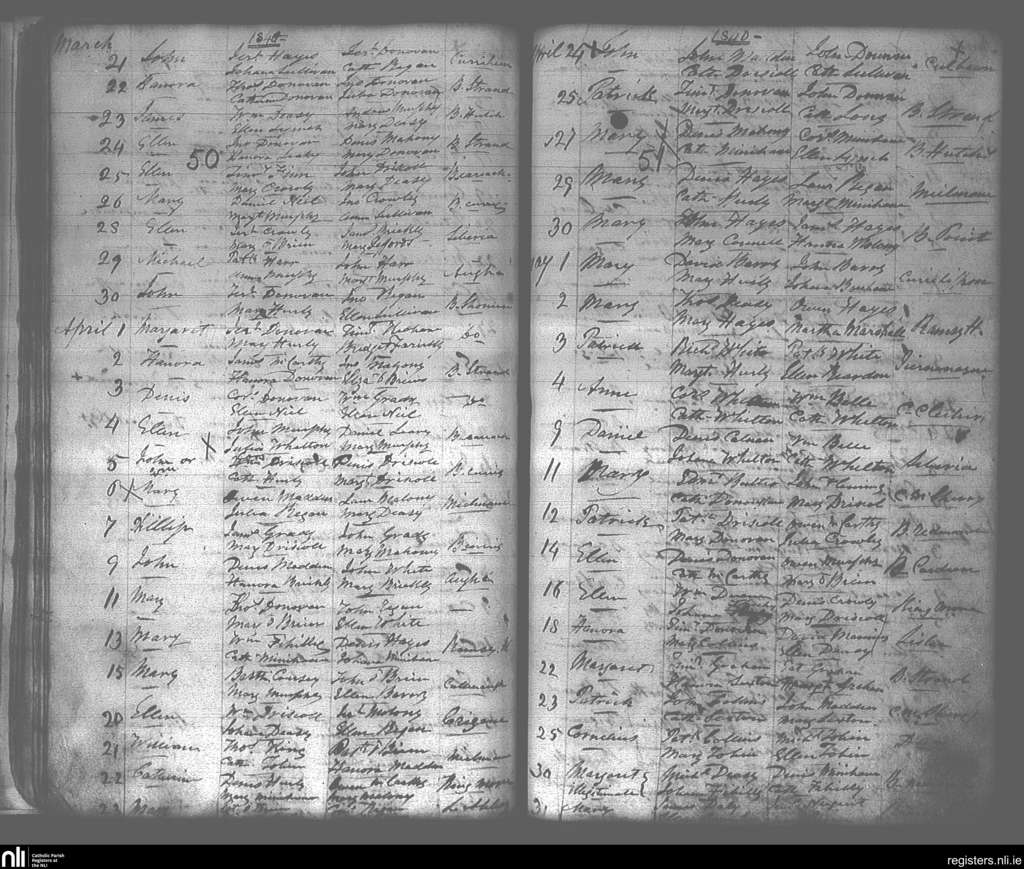 Lislee; County of Cork; Diocese of Cork and Ross. Baptisms, Mar. 1840 to May 1840