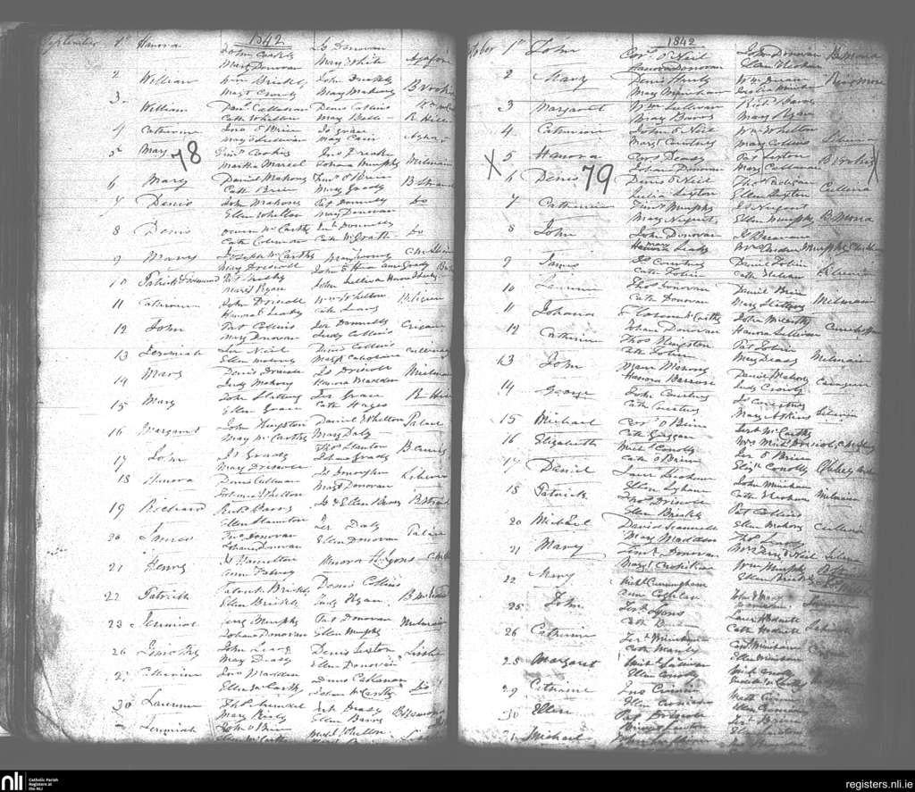 Lislee; County of Cork; Diocese of Cork and Ross. Baptisms, Sep. 1842 to Oct. 1842