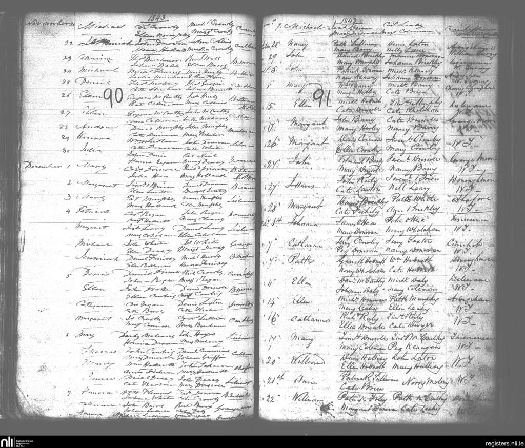 Lislee; County of Cork; Diocese of Cork and Ross. Baptisms, Nov. 1843 to Dec. 1843