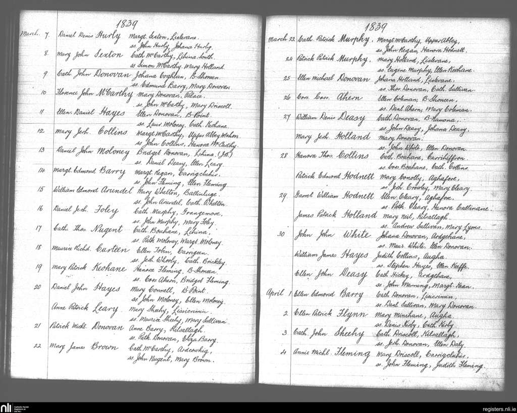 Lislee; County of Cork; Diocese of Cork and Ross. Baptisms, Mar. 1839 to Apr. 1839
