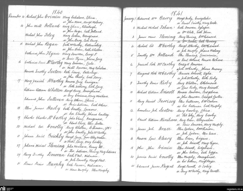 Lislee; County of Cork; Diocese of Cork and Ross. Baptisms, Dec. 1840 to Jan. 1841