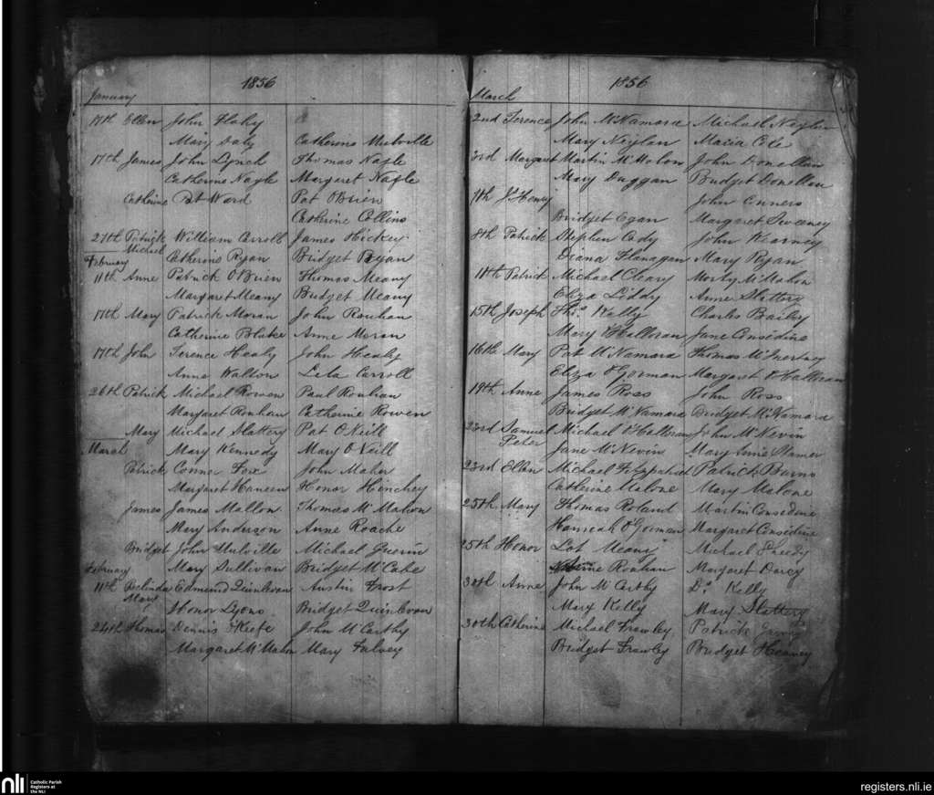 Killone; County of Clare; Diocese of Killaloe. Baptisms, Jan. 1856 to Mar. 1856