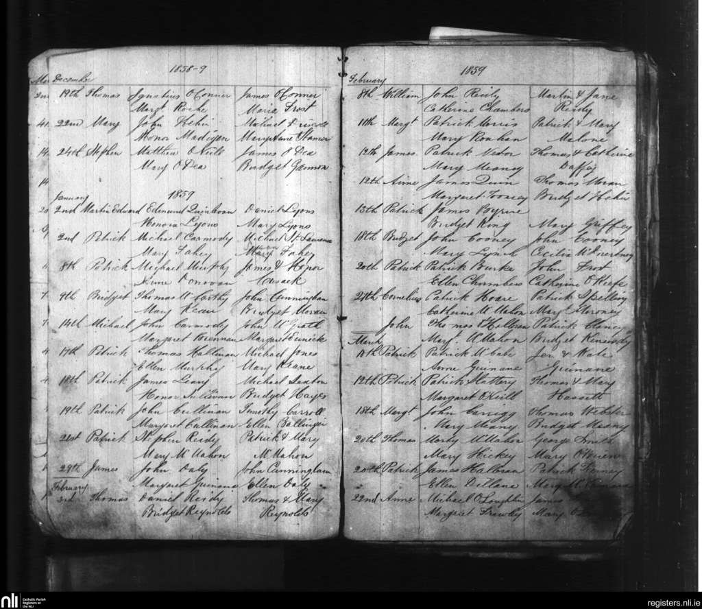 Killone; County of Clare; Diocese of Killaloe. Baptisms, Dec. 1858 to Mar. 1859
