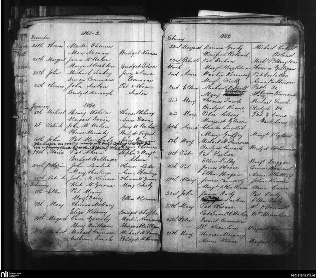 Killone; County of Clare; Diocese of Killaloe. Baptisms, Dec. 1861 to Mar. 1862